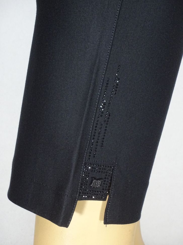 Дамски макси еластичен панталон в големи размери с камъчета на крачола в черно 03 00460