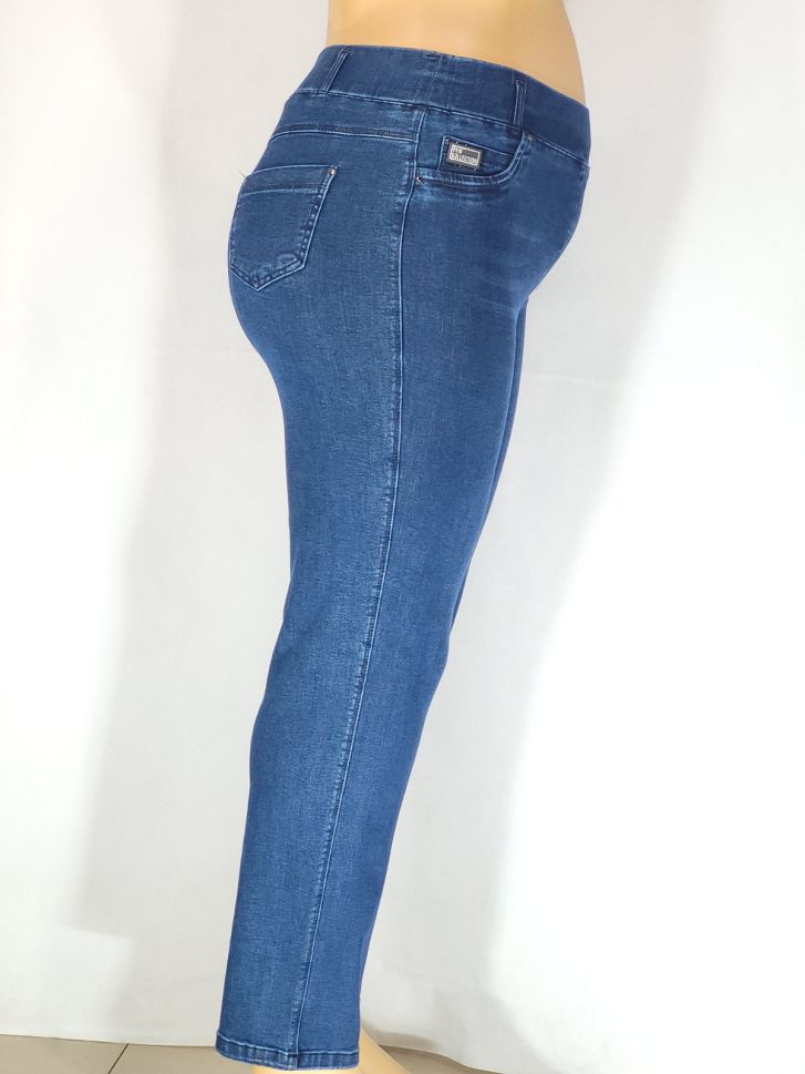Начало Дамско Дънки Дамски макси плътни еластични дънки в големи размери с нежна апликация в синьо 02 00480