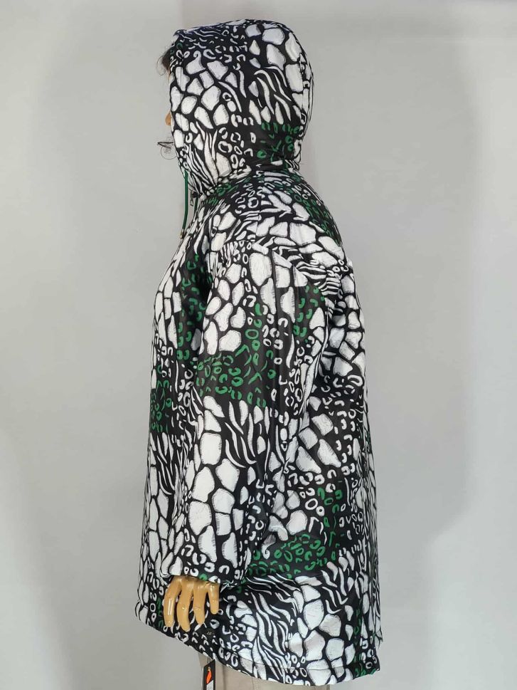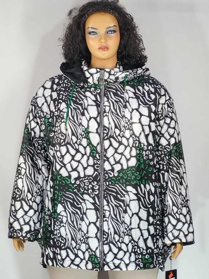 Дамско макси средно дебело яке в големи размери с подвижна качулка и интересна щампа 06 00270