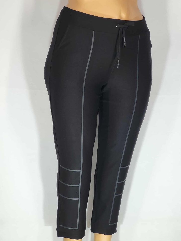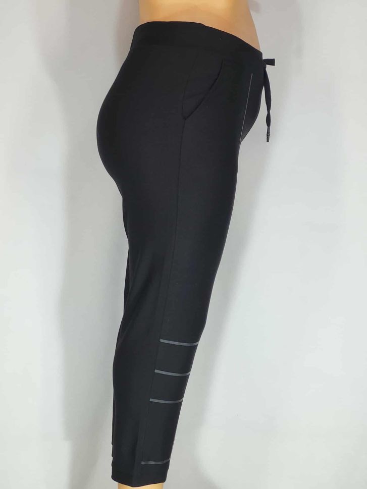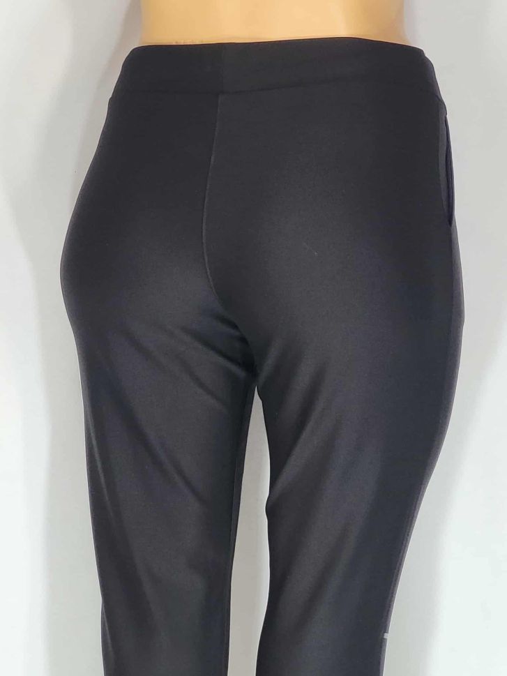 Дамски макси еластичен плътен панталон в големи размери с връзки и щампа в предната част на крачола в черно 03 00548
