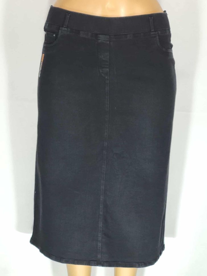 Дамска макси плътна еластична дънкова дълга права пола в големи размери в черно 04 00109