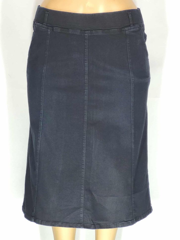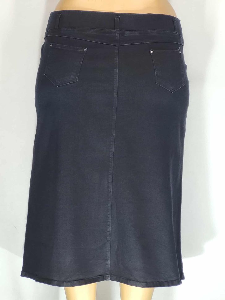 Дамска макси плътна еластична дънкова дълга леко разкроена пола в големи размери в индиго 04 00110