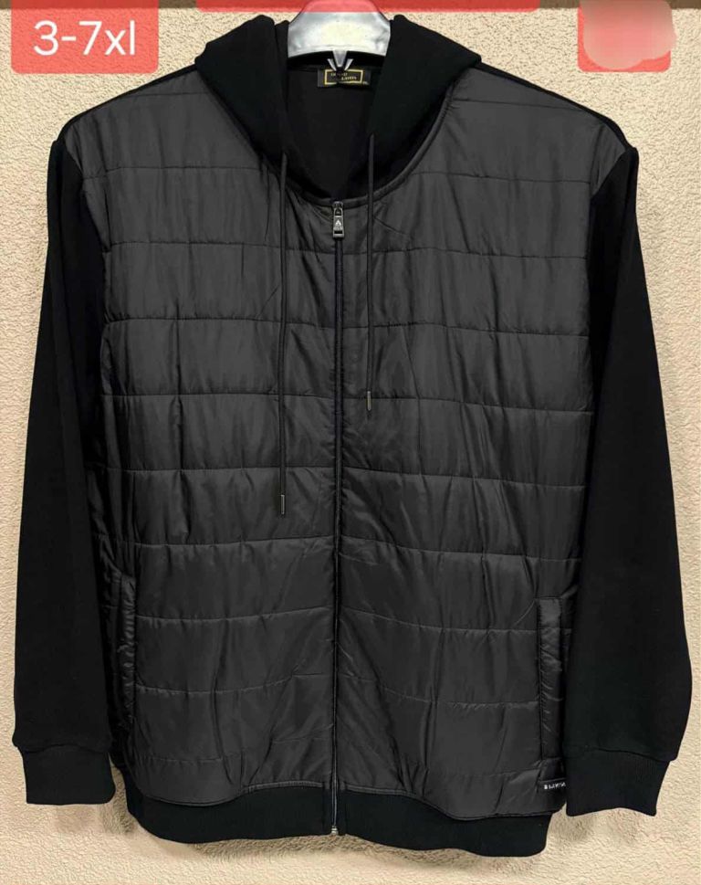 Мъжки суичер в големи размери с комбинация плат и шушляк в черно 27 00003