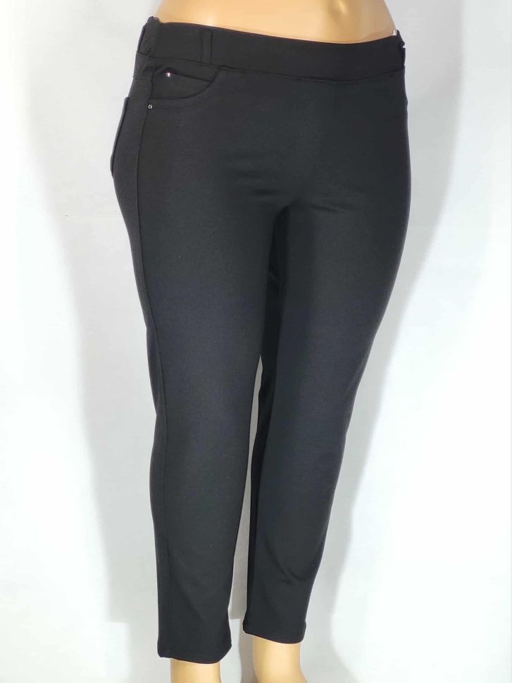 Дамски макси еластичен панталон в големи размери изчистен много дебел слим в черно 03 00554