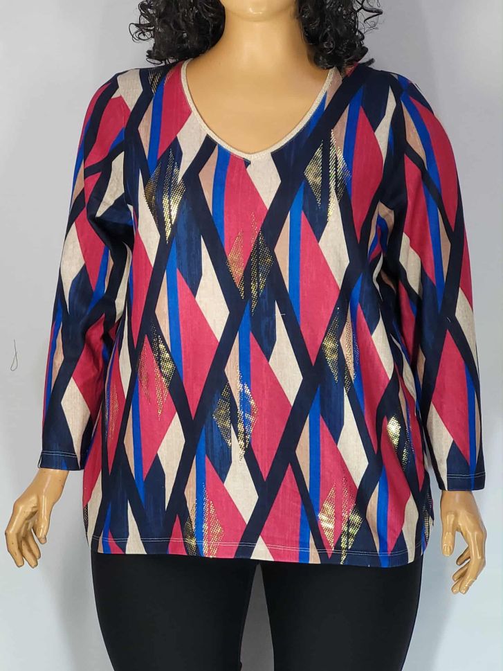 Дамска макси блуза в големи размери тип плетка шпиц с интересна щампа 01 01532