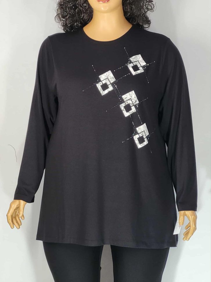 Дамски макси блузон в големи размери от финно трико с интересна щампа 01 01533