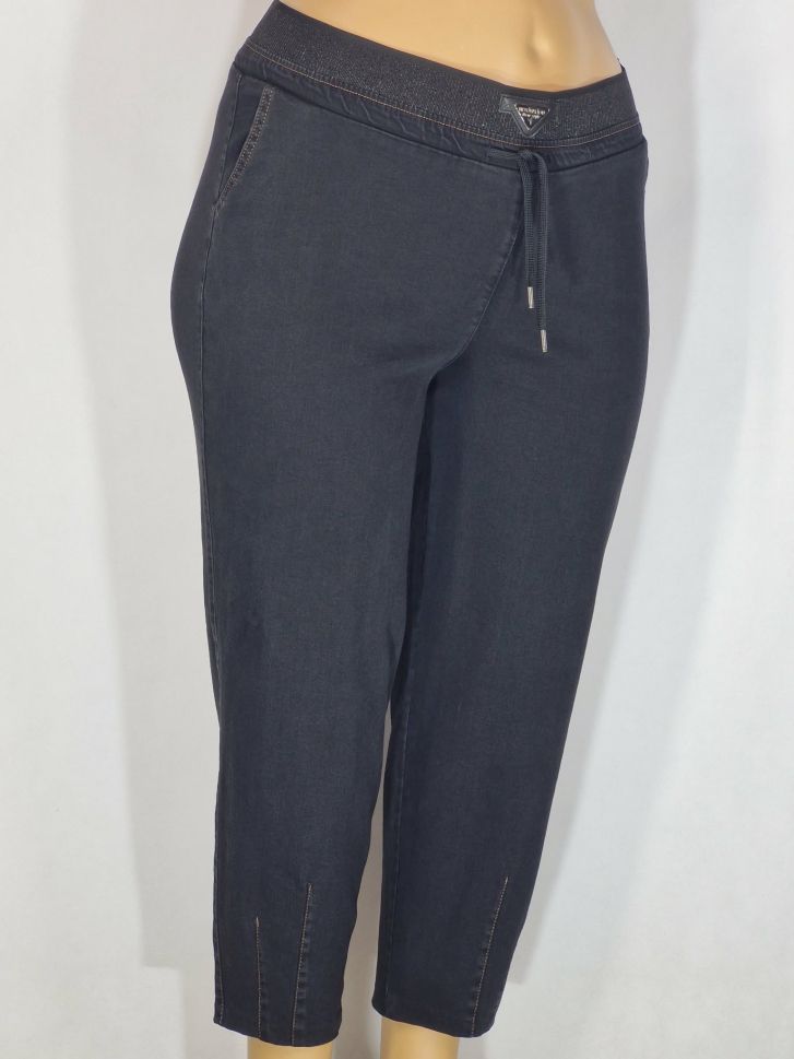 Дамски макси спортни плътни еластични дънки в големи размери с широк ластик и връзка в черно 02 00562