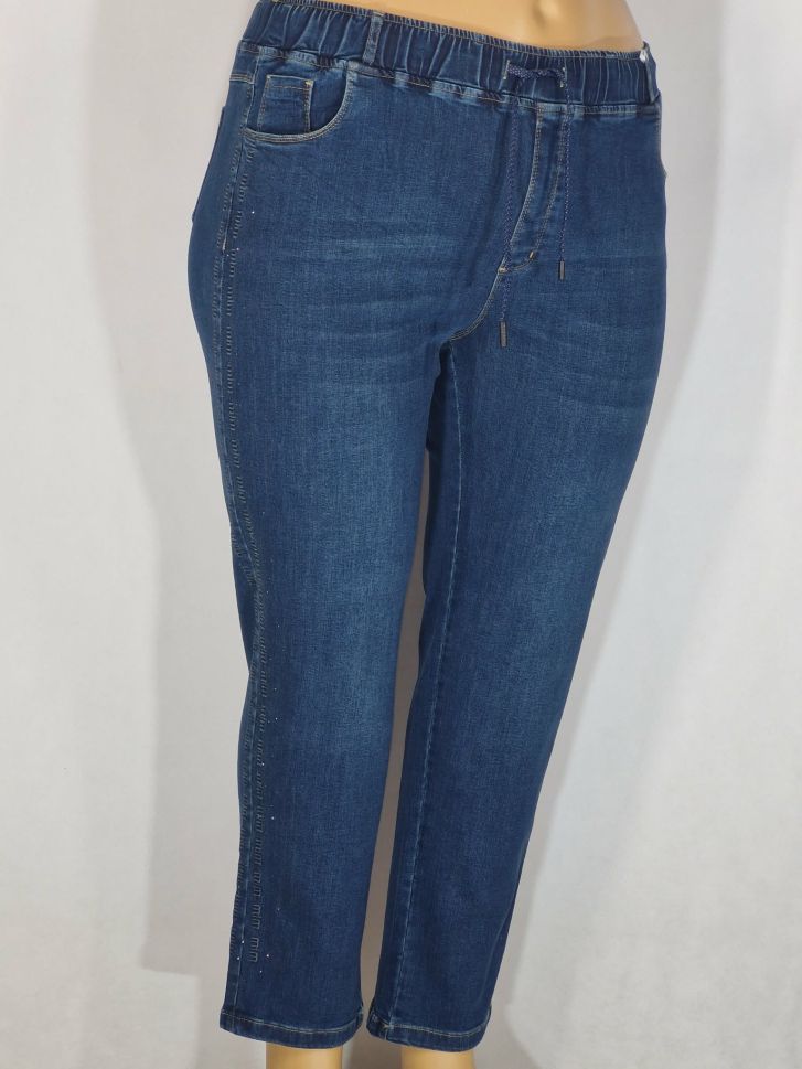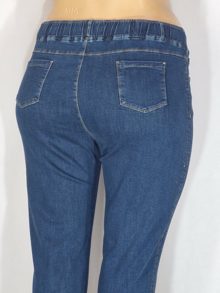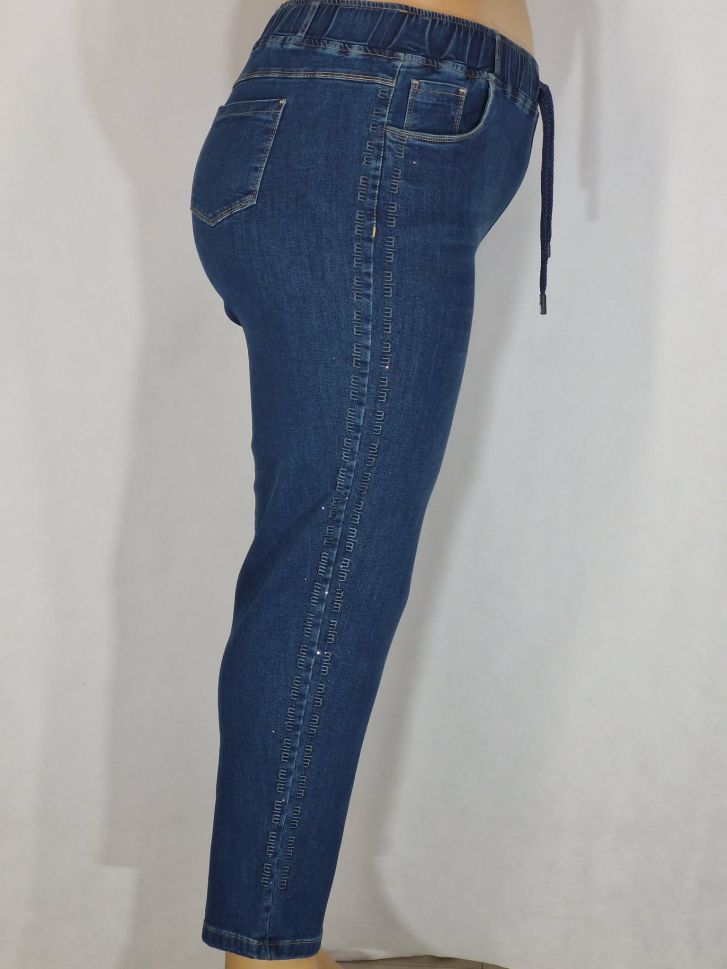 Дамски макси дънки в големи размери с кант камъчета и бродерия в класическо синьо с връзки 02 00565