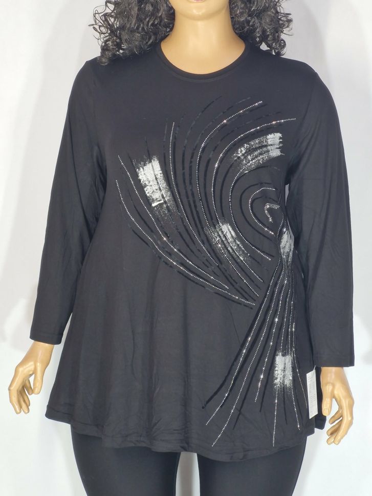 Начало Дамско Блузи дълъг ръкав Дамска макси блуза в големи размери от трико в черно с щампа камъчета 01 01542