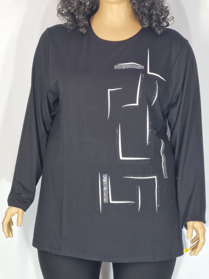 Дамски макси блузон в големи размери от финно трико с интересна щампа 01 01545